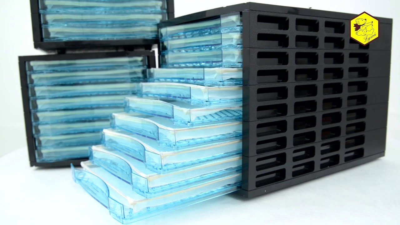 Kleine eenvoudige pollen/kruiden-droger van 600W (220/110V 600W). De pollen/kruiden-droger bevat 6 lades. Per lade kunt u in het totaal 500 tot 1000 gram pollen/kruiden laten drogen. Er is in totaal ongeveer plek voor 3 tot 6 kg pollen/kruiden. De lades zijn voor 75% open voor optimaal droog proces. De temperatuur van het drogen ligt tussen de 29˚C en 63˚C en deze kan met de thermostaat ingesteld worden. Door het  slimme ontwerp is deze pollen/kruiden-droger eenvoudig te reinigen na gebruik.
