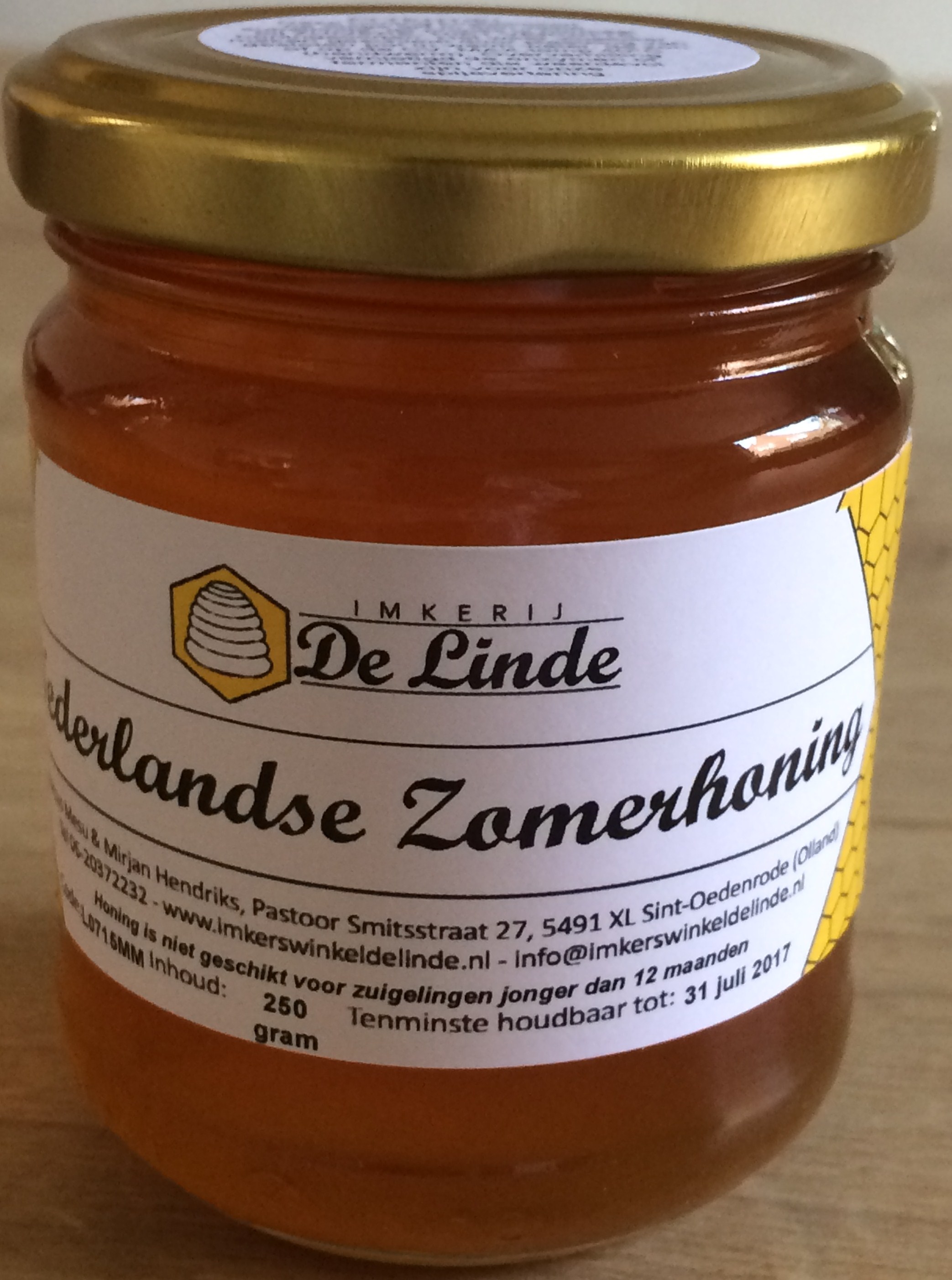 Nederlandse zomerhoning in glazen pot van 250 gram.