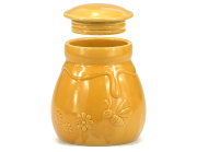 Honingpot gemaakt van keramiek in de kleur lichtgeel. Deze honingpot is met de handgeschilderd en met goed afsluitbare deksel